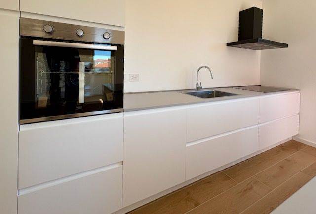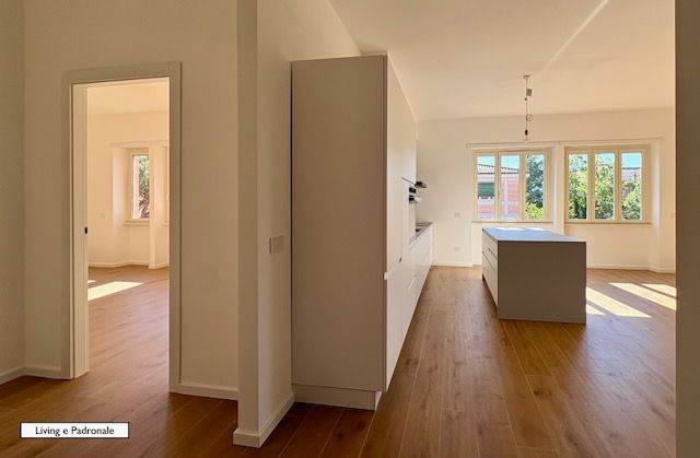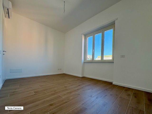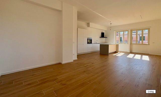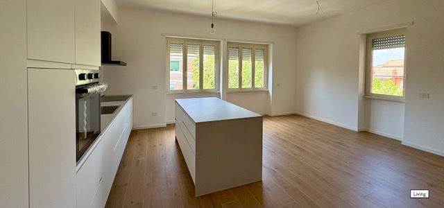 E' composto da ampio ingresso, living di 43 mq circa con doppia esposizione, arredato con cucina nuova a vista completa di isola ed elettrodomestici