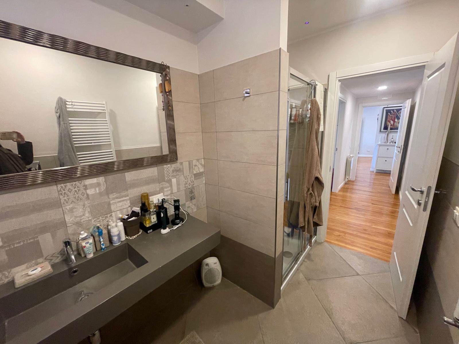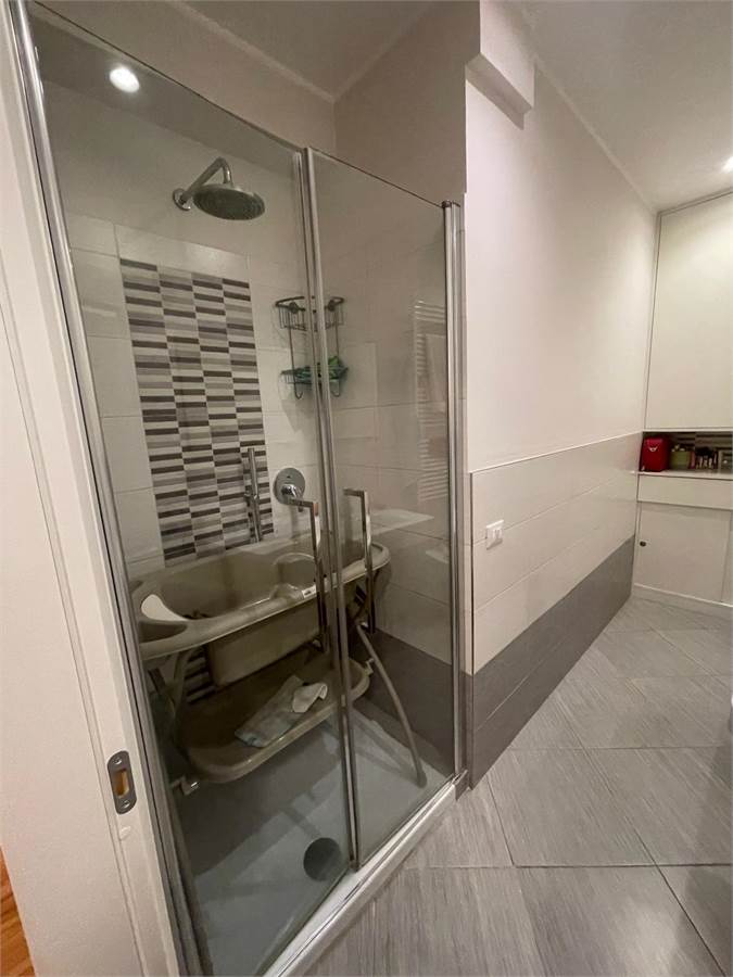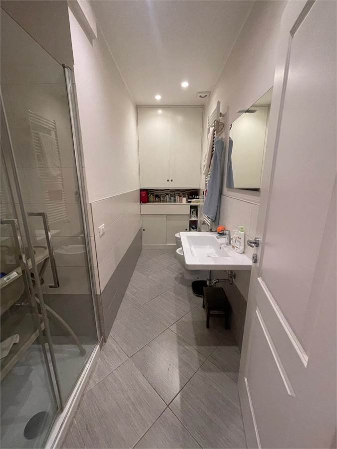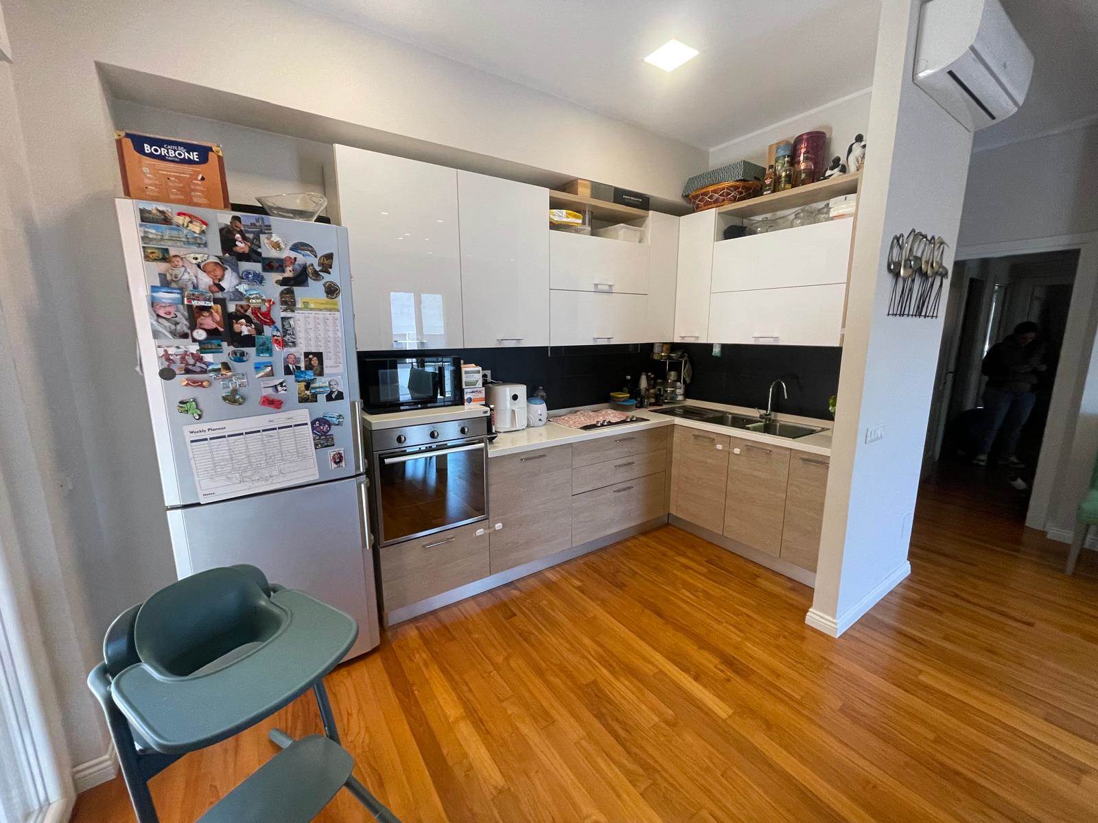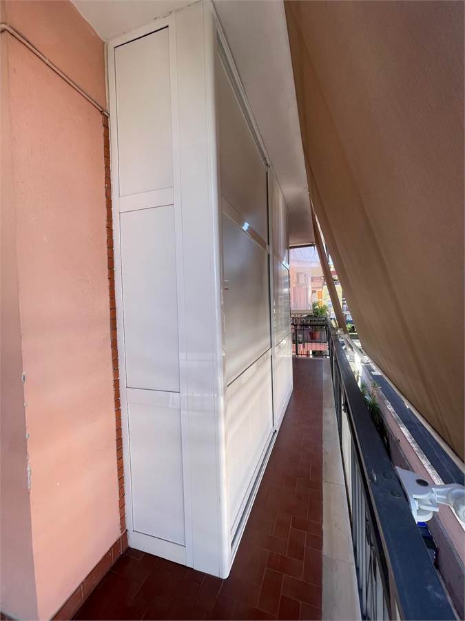 Posto al secondo piano con ascensore di una piccola palazzina con soli 6 condomini, l'appartamento è composto da sala da pranzo con angolo cottura, tre camere da letto e due bagni. L'esposizione su tre lati lo rende luminosissimo e permette l'uscita diretta sull'ampio terrazzo perimetrale attrezzato con armadio a muro e tende da sole.