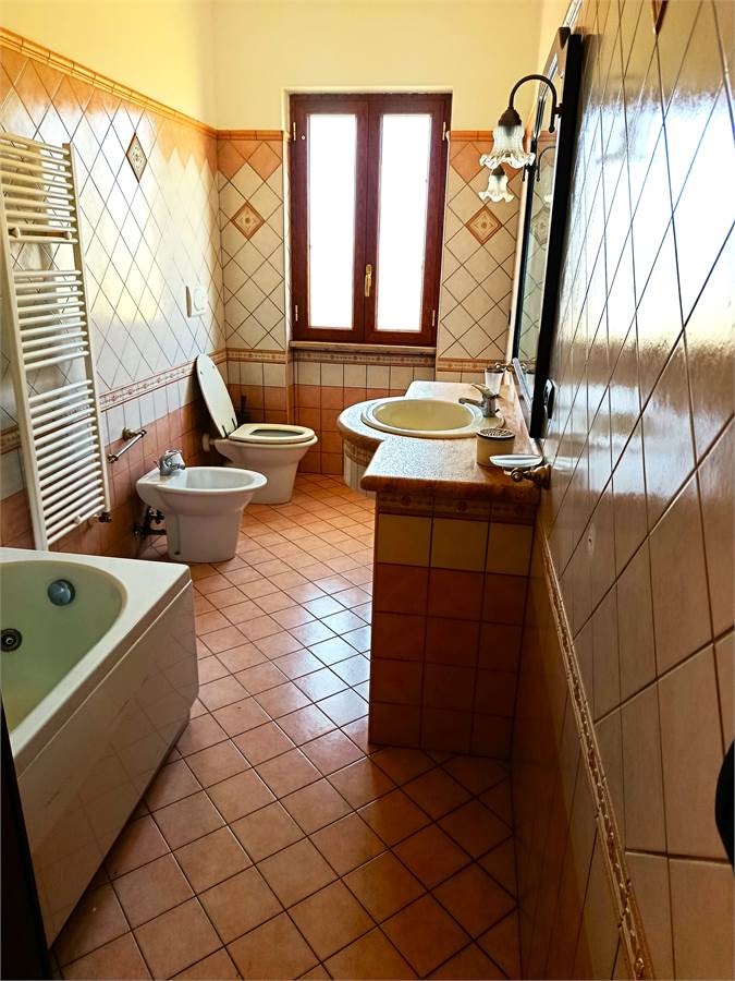 La corte è in buona parte giardinata e parte dotata di strada d'accesso ed area parcheggio, inoltre sono presenti tre magazzini per un totale di 26 mq.
