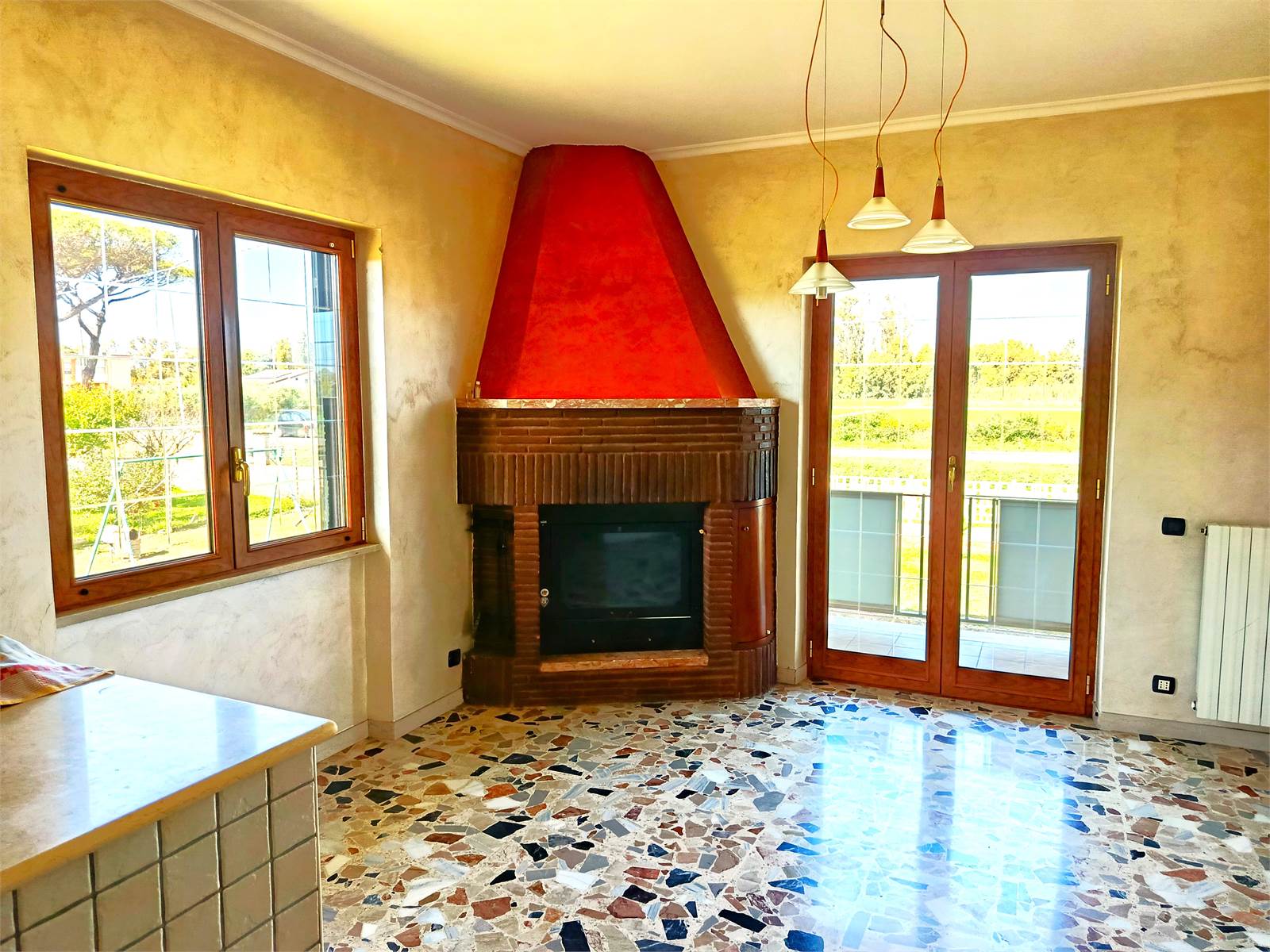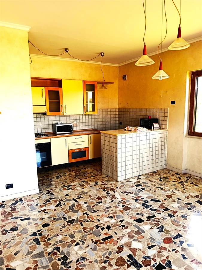 PTR: ingresso, salone doppio, cucina con tinello e termocamino, disimpegno, ripostiglio, 2 ampie camere, camera matrimoniale doppia, bagno, per un totale di 163 mq, e 4 balconi per un totale di 34 mq.