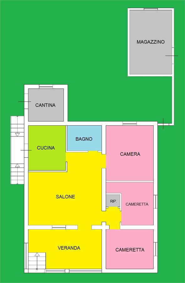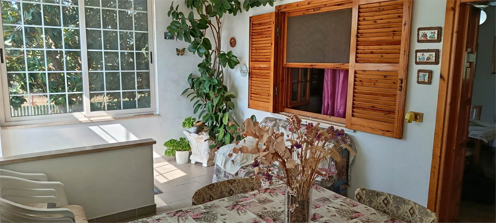 La villetta è stata edificata degli anni '80, verte in buone condizioni ed è così composta: veranda chiusa, salone con camino, cucina, camera matrimoniale, bagno, dis., 2 camerette, rip.